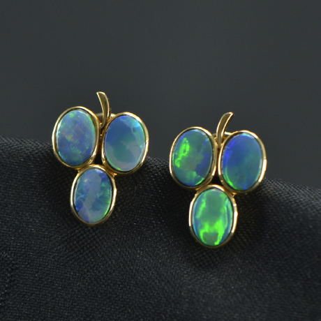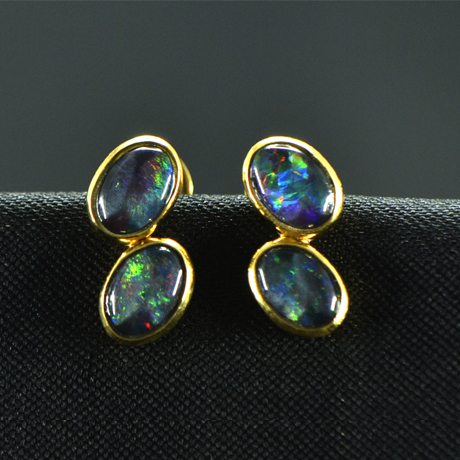 Autralian Natural Doublet Opals studded in 18K Yellow Gold Earstud.