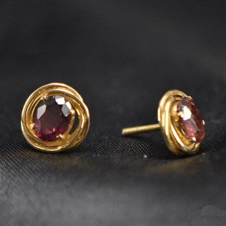 Natural Oval Garnet Studded in 18K Yellow Gold Earstud