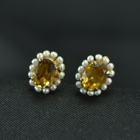 Naturl Yellow Sapphire and Cultured Pearls studded in 18K yellow Gold Earstud