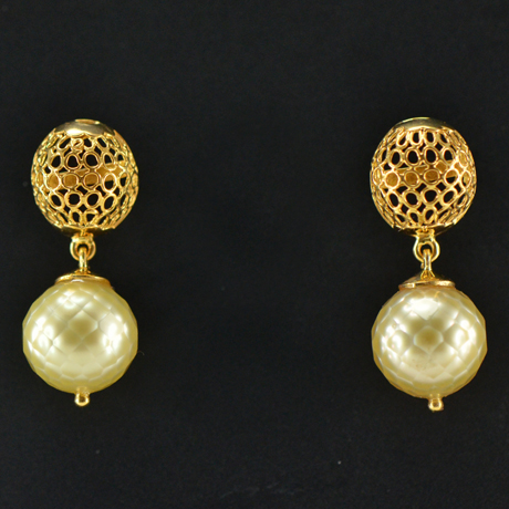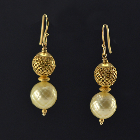 18K Yellow Mesh Sapcers with Faceted Golden Pearls