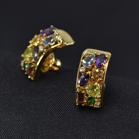 Multi Colour and Multi Shapes of Semi precious Natural Gemstone with Fine Diamonds in 18K Yellow Gold Earstud.