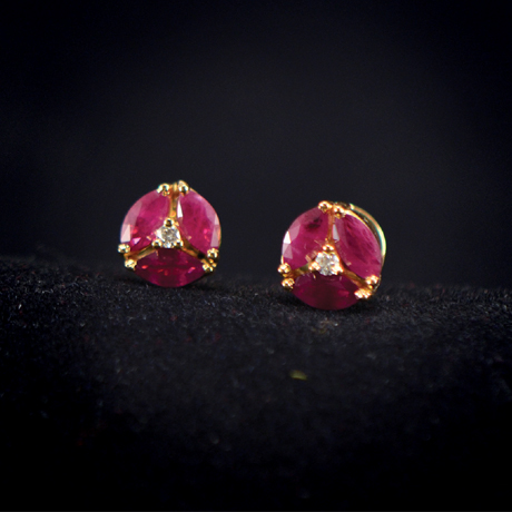 Marquee Ruby and Fine Diamonds in 18K Yellow Gold Earstud.