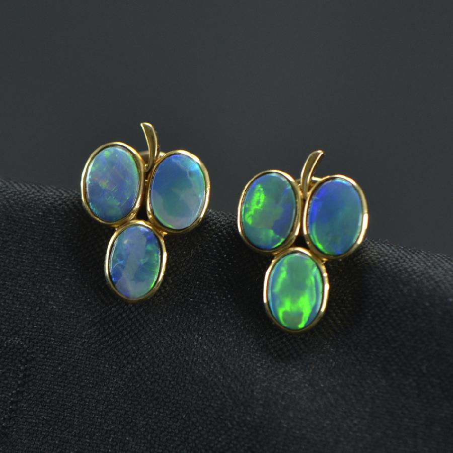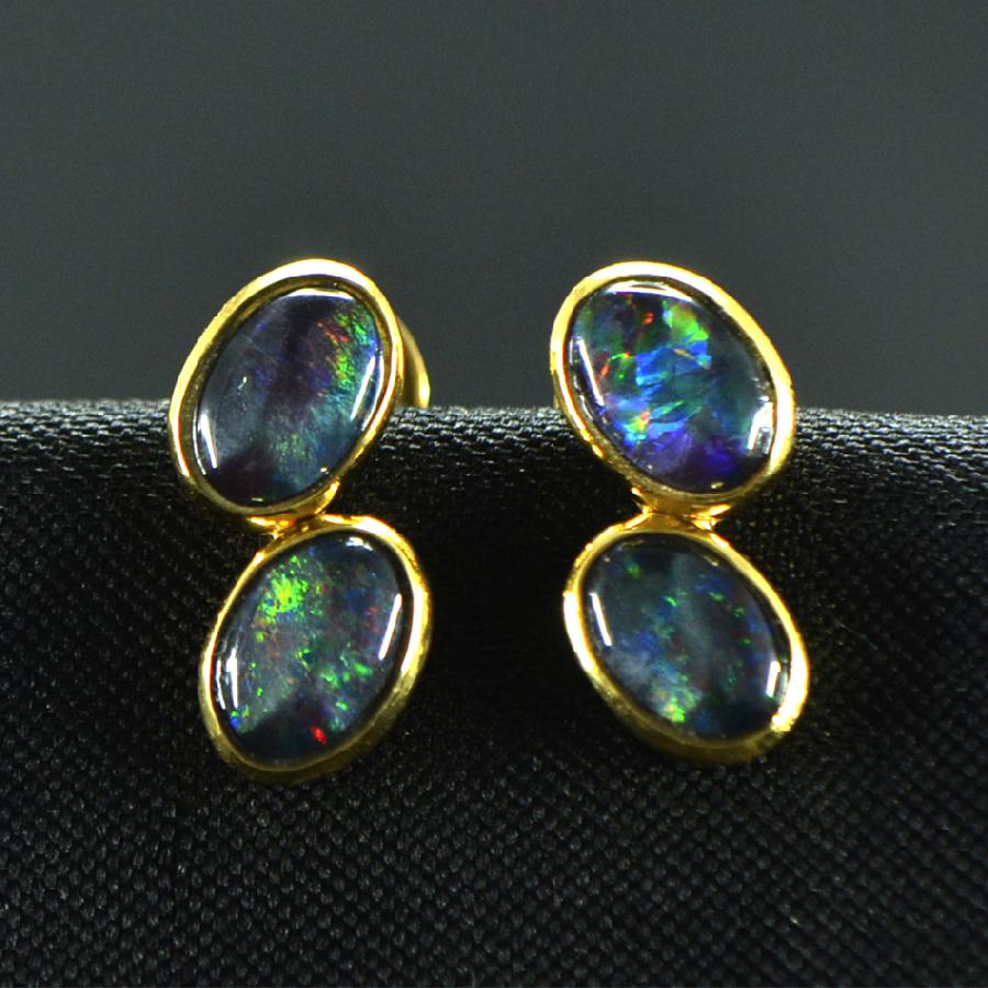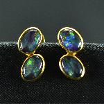 Autralian Natural Doublet Opals studded in 18K Yellow Gold Earstud.