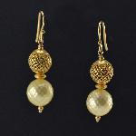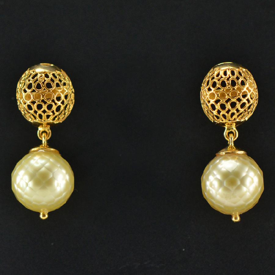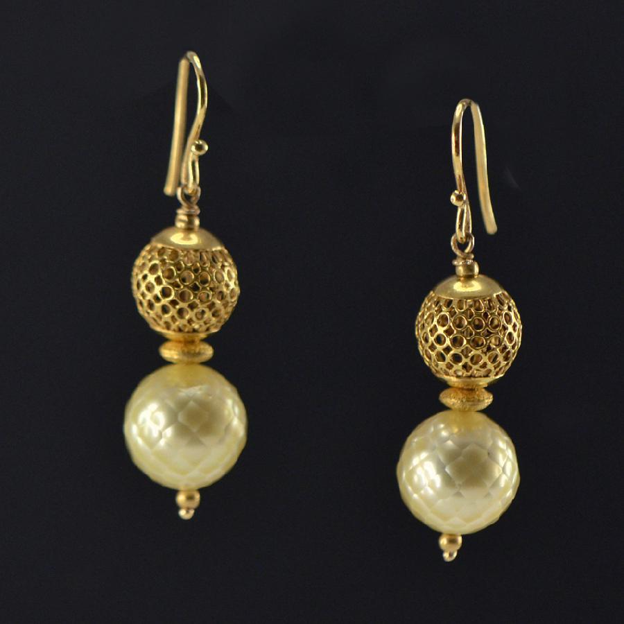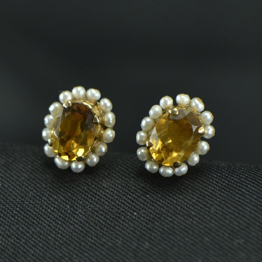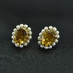Naturl Yellow Sapphire and Cultured Pearls studded in 18K yellow Gold Earstud