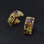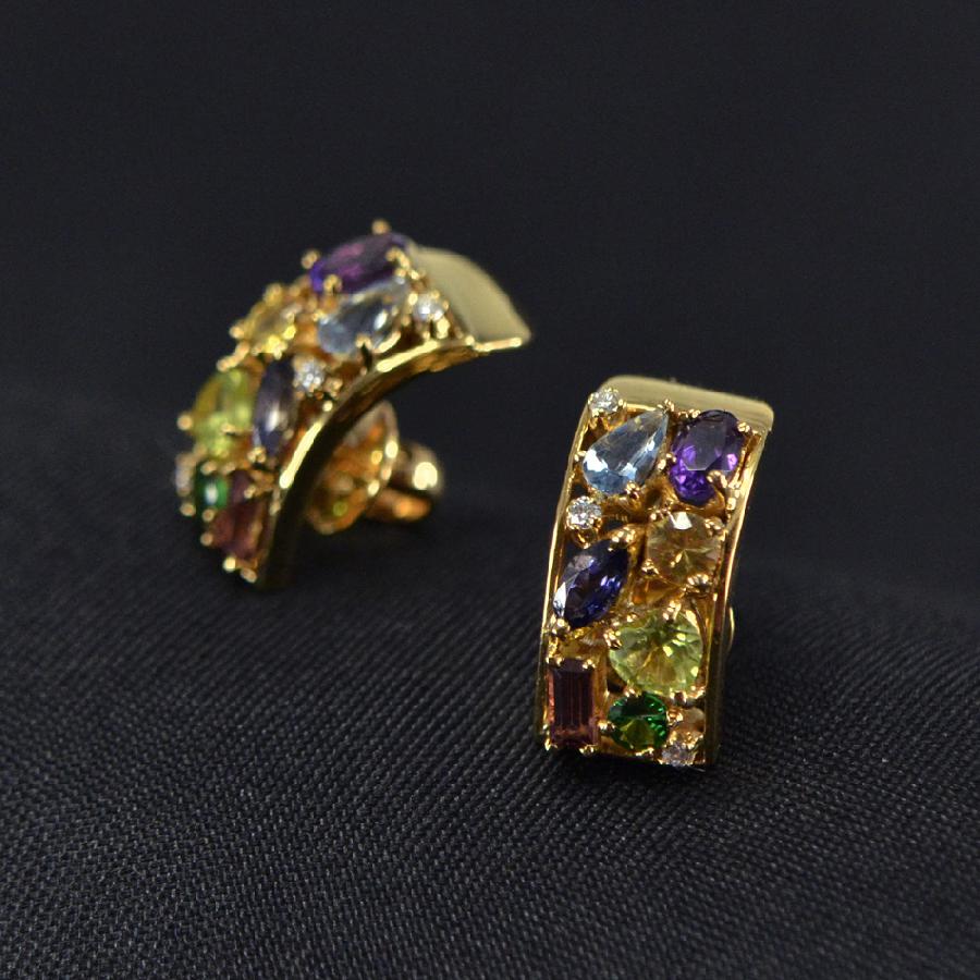 Multi Colour and Multi Shapes of Semi precious Natural Gemstone with Fine Diamonds in 18K Yellow Gold Earstud.