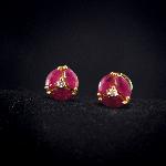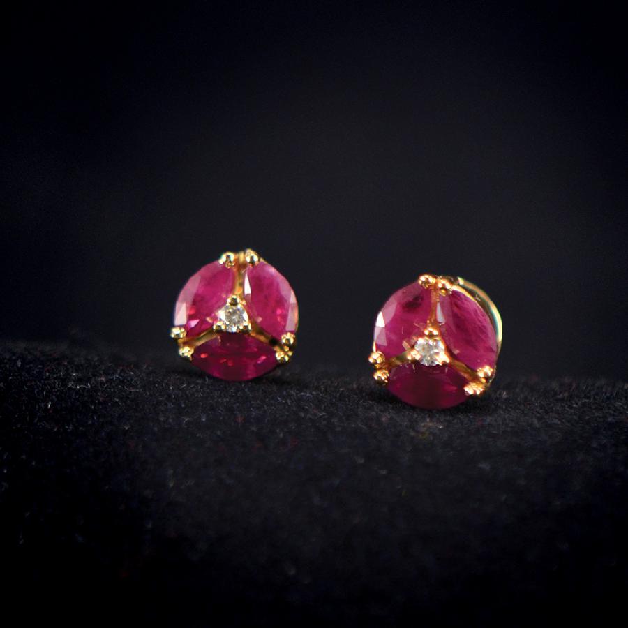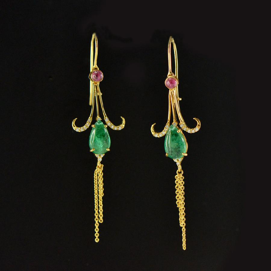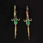 Fine Diamond, Natural Uncut Emerald and Ruby in 18K Yellow gold Hanging Earstud.
