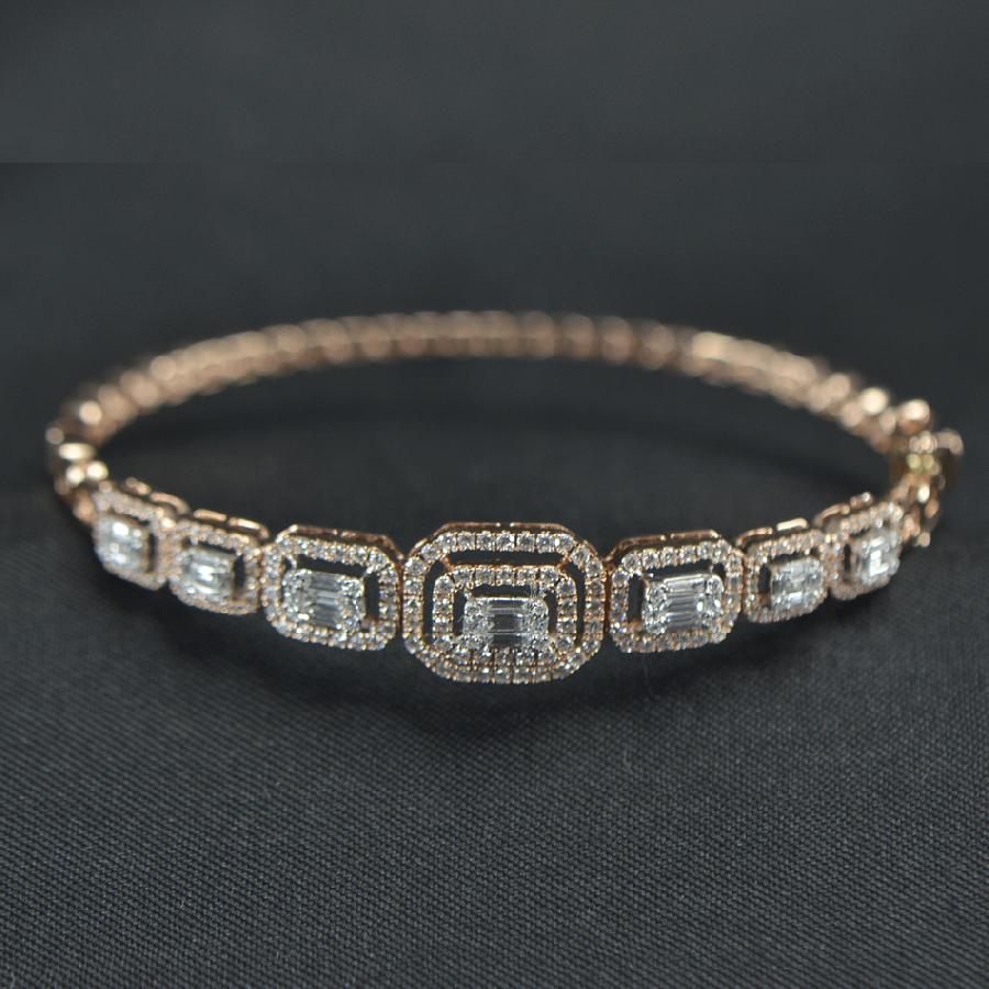 Fine Round Brilliant and Baguette Cut Diamonds Studded in 18K Rose Gold Bracelet.