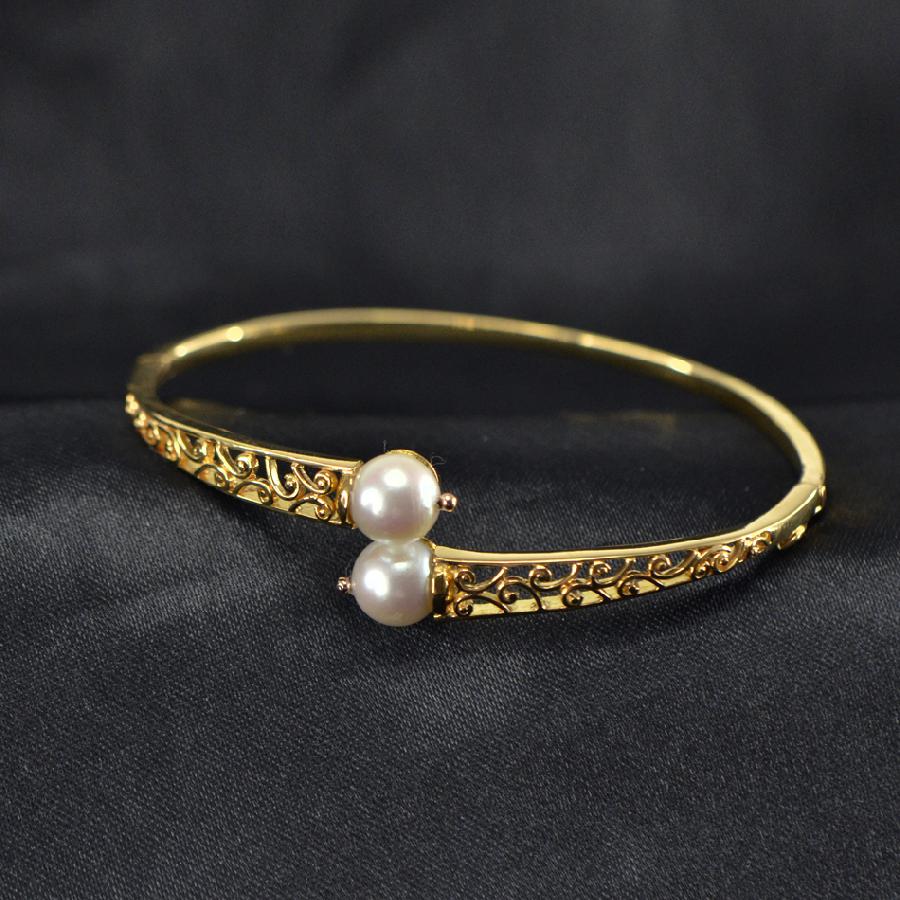 Fine Diamonds with Japanese Akoya Pearls in 18K Yellow Gold Bracelet