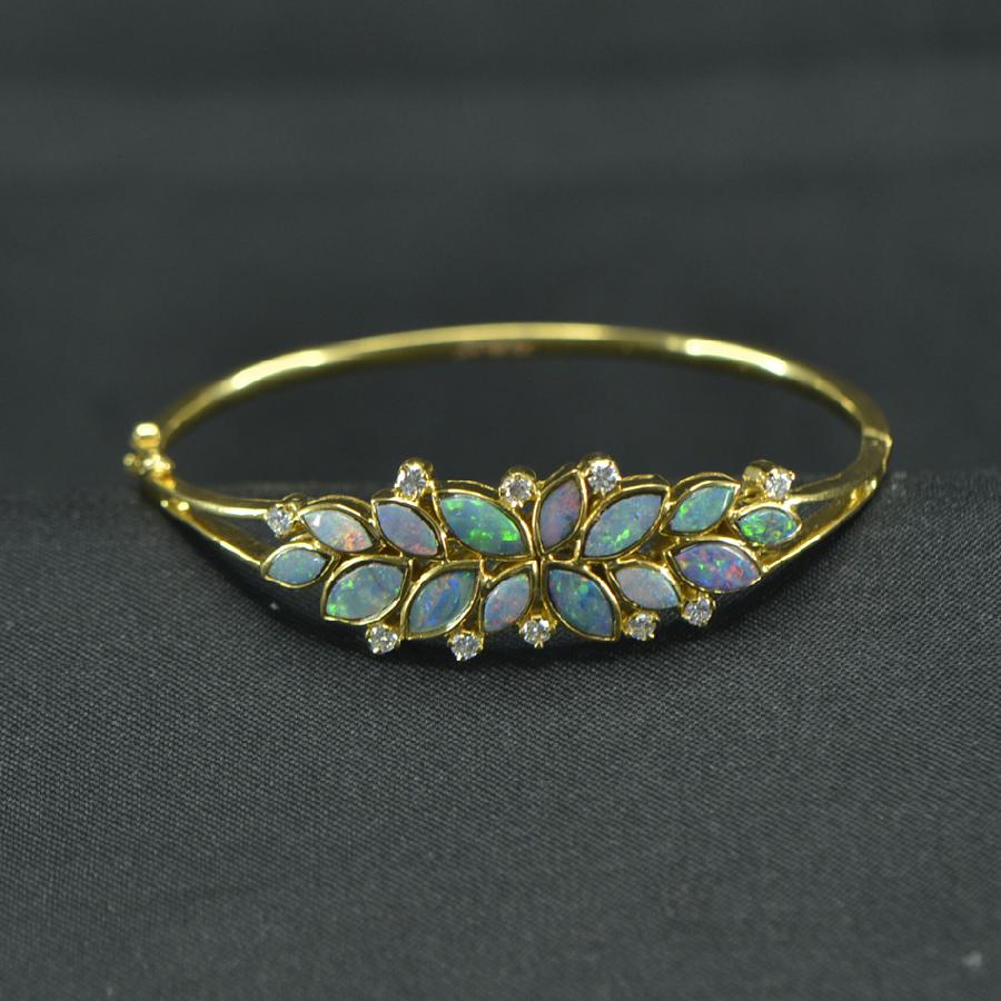 Fine Diamonds with Natural Australian Opal studded in 18K Yellow Gold