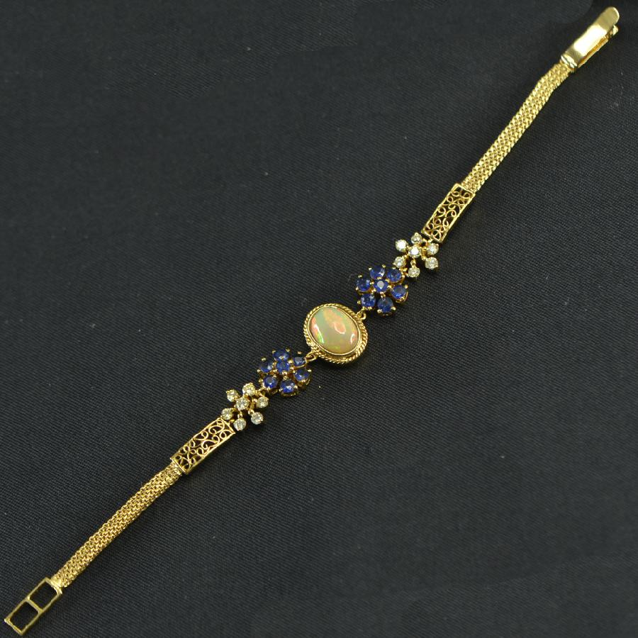 Fine Diamonds with natural Blue Sapphire and Etiopian fire Opal.