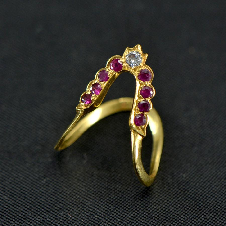 Traditional Vanki Ring studded with Fine Round Rubies and Diamonds in 18K Yellow Gold.