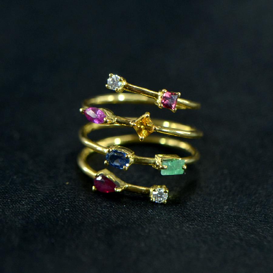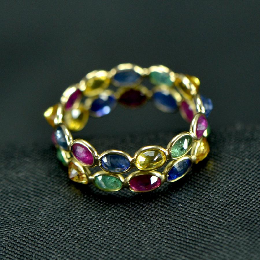 Natural Multi colour Gem Stones studded in 18K Yellow Gold Eternity