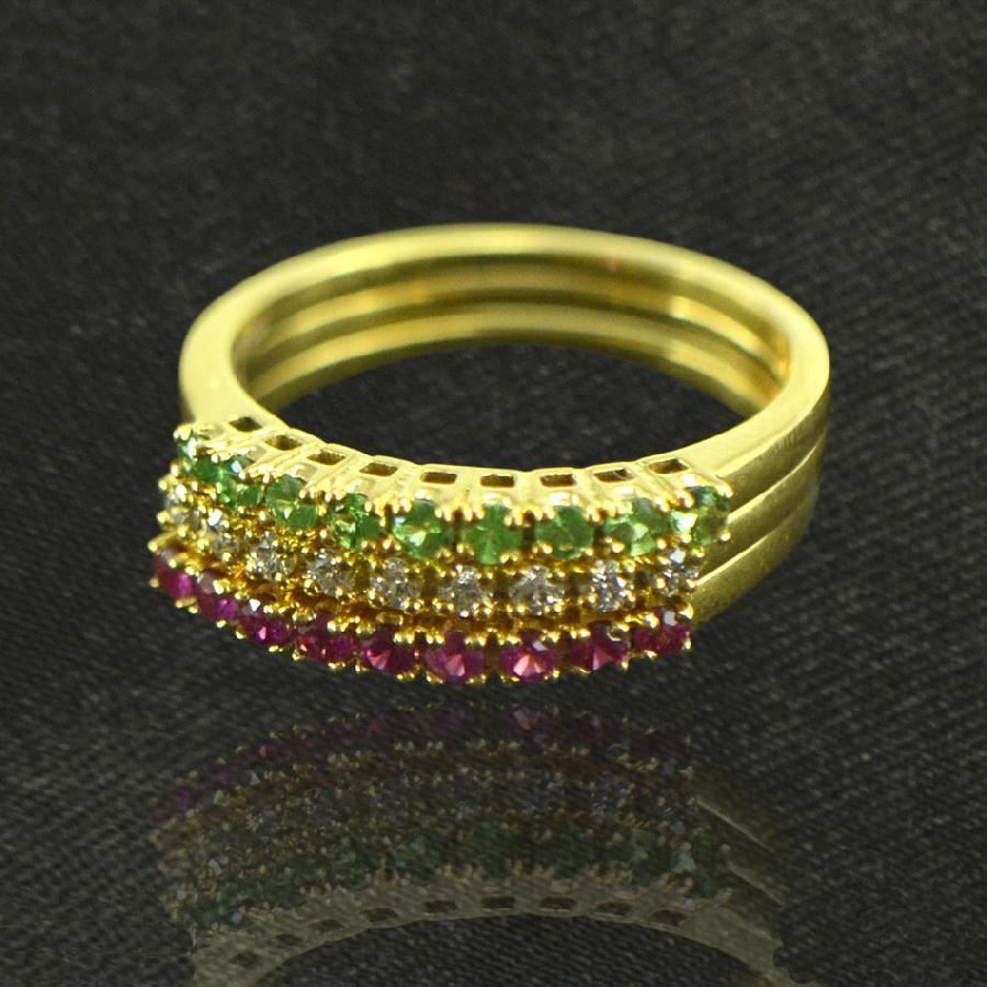 Fine Diamonds and Natural Ruby and Emerald studded in 18K Yellow Gold.