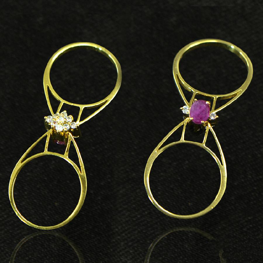 Fine Diamonds and Natural Ruby studded in 18K Yellow Gold Reversible Ring.