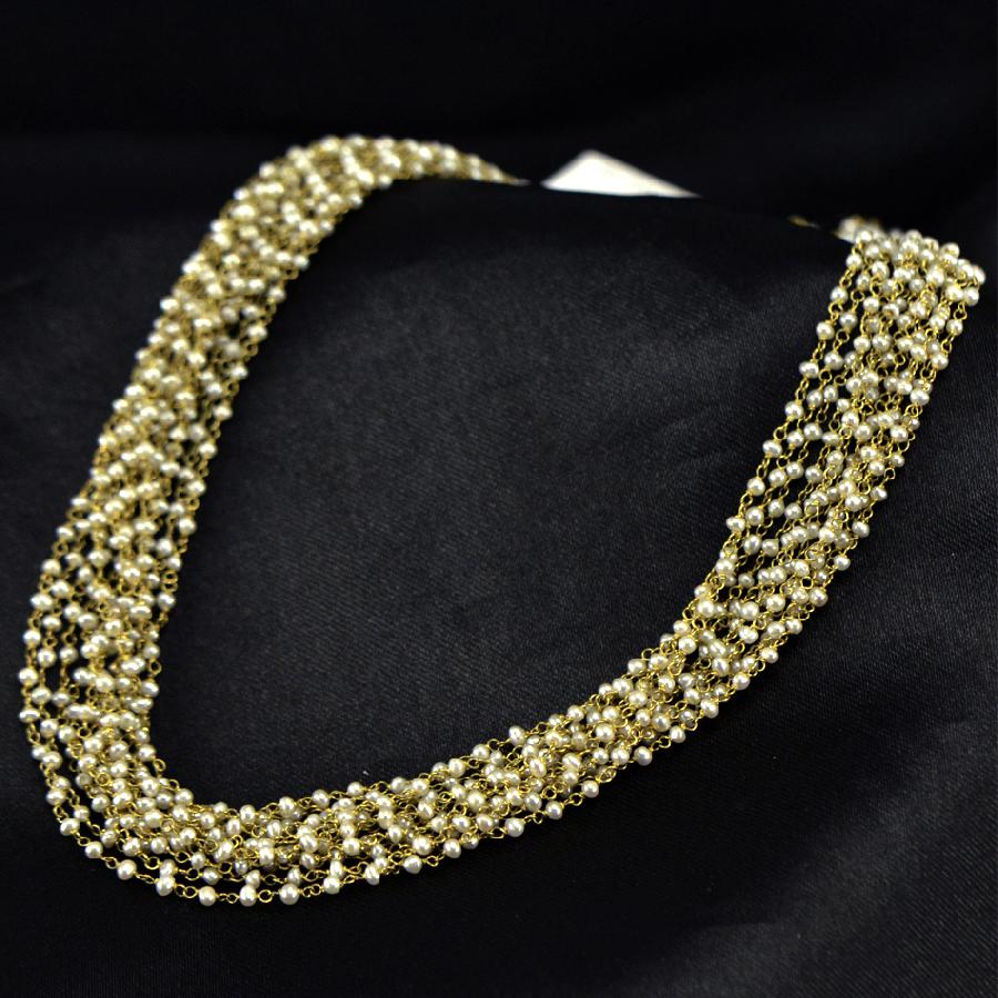 Culrured Rice Pearls beads in 12 line Mala Knotted with 22K Yellow Gold.
