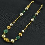 Tumbles Cabochon Emerald Beads with Pearls Knotted in 22K Yellow Gold.
